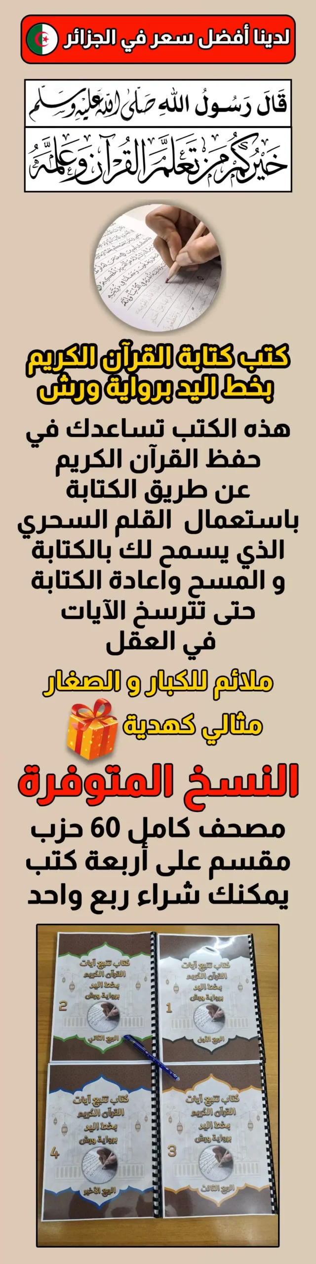 مصحف كامل مقسم على 4 كتب2950 د.ج